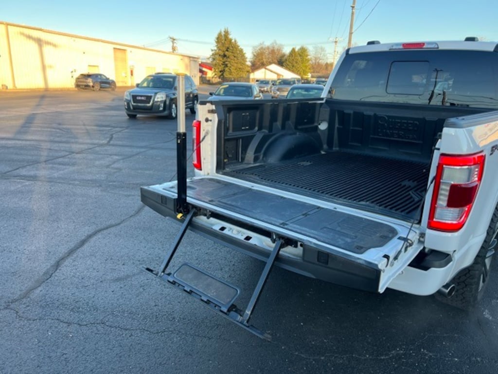 2021 Ford F-150 Lariat LOCAL TRADE, 4D SuperCrew, 5.0L V8, Accent-Color Angular Step Bars, Adjustable pedals, Body-Color Front & Rear Bumpers, Front dual zone A/C, Heated front seats, Heated Steering Wheel, Lariat Sport Appearance Package, Navigation system: Connected Navigation (90-Day Trial), Power Tailgate, Twin Panel Moonroof, Ventilated front seats, Wheels: 20" 6-Spoke Dark Alloy Painted Aluminum. Oxford White