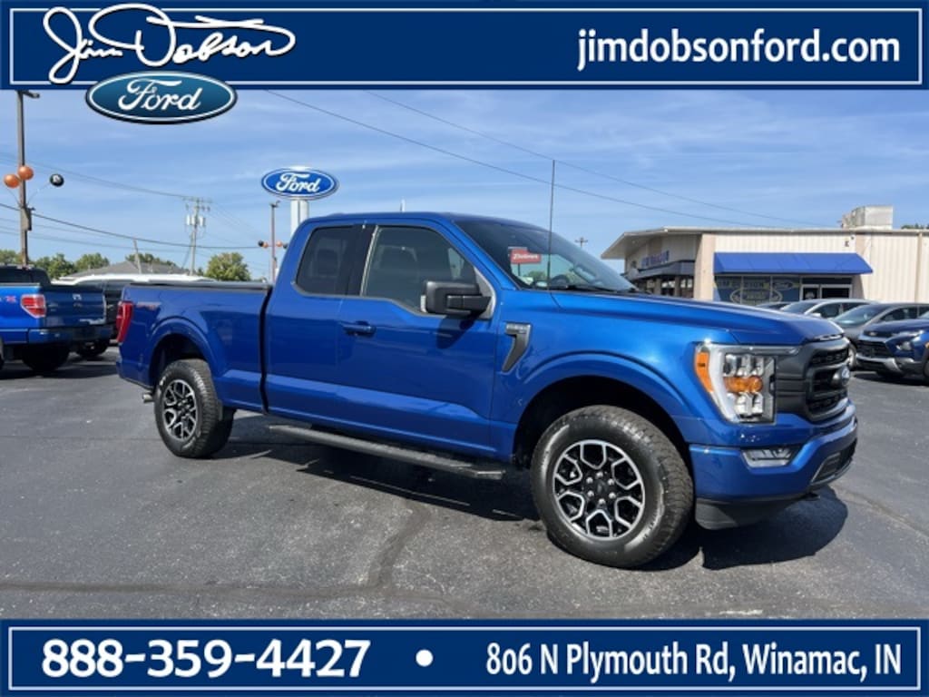 2022 Ford F-150 XLT ONE OWNER, ACCIDENT FREE VEHICLE HISTORY REPORT!, Super Cab, 4WD, Accent-Color Step Bars, Black 2-Bar Style Grille w/Black Surround/Accents, Body-Color Door & Tailgate Handles, Body-Color Front & Rear Bumpers, Box Side Decals, Chrome Single-Tip Exhaust, Unique Sport Cloth 40/Console/40 Front-Seats, Wheels: 18" 6-Spoke Machined Aluminum, XLT Sport Appearance Package. Atlas Blue Metallic