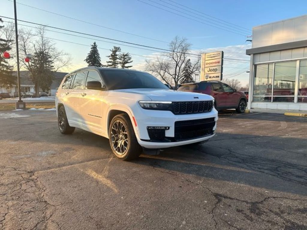 2023 Jeep Grand Cherokee L Summit LOCAL TRADE, ONE OWNER, Active Noise Control System, Adaptive suspension, Auto-leveling suspension, Deluxe Headliner, Front Passenger Interactive Display, Heads-Up Display, Heated front seats, Luxury Tech Group V, Power moonroof, Quick Order Package 23U Summit Reserve, Summit Reserve, Ventilated Rear Seats, Wheels: 21" x 9.0" Machined Face/Painted Aluminum, Wireless Charging Pad. Bright White Clearcoat